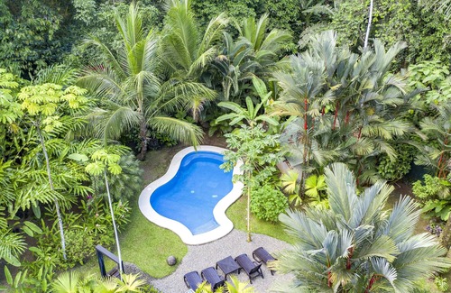 The outdoor area is fully fenced and private. You'll have your own pool to cool off in and loungers to soak up the sun from. Watch for friendly wildlife in the yard as it's common to see agoutis eating seeds from the garden and sloths, monkeys, toucans and macaws in the trees above.