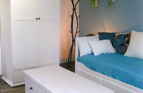 Relax in the garden (enjoy the outdoor furniture!) of this 484.4-sq-ft apartment, which also offers a BBQ grill. For a change of scenery, come inside and enjoy the WiFi, TV, stereo, and music library.