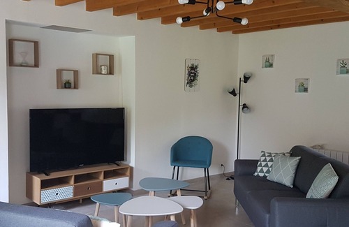 En la sala de estar, disfrute de las instalaciones a su disposición, como televisión, Wi-Fi, consola Wii y altavoz bluetooth. También encontrarás libros, juegos de mesa y juguetes para niños.