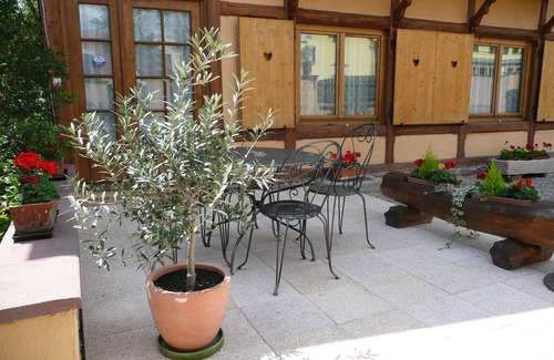Apartamento ubicado en R.D.C en una casa de entramado de madera de estilo chalé alsaciano, con jardín (tumbonas, mesa, barbacoa), patio, estacionamiento privado.