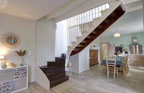 Casa rural individual de 120 m² en dos plantas. En la planta baja, se accede al amplio y luminoso salón: cocina equipada abierta al comedor y al salón (sofá cama) y baño completo (ducha italiana, lavabo e inodoro). En la planta superior se encuentran las dos habitaciones de noche, decoradas en tonos suaves para el descanso: la habitación Lilas: para 4 personas con una cama de 160 cm y dos camas de 90 cm en el entresuelo, accesible por una escalera de molinero, y la habitación Jonquille: para 4 personas con una cama de 160 cm y dos camas de 90 cm y baño completo (ducha italiana, lavabo e inodoro). En la casa rural "Chez Marinette", un auténtico nido acogedor, encontrará todo el confort para una estancia de calidad en familia alrededor de la hermosa mesa del comedor o con amigos en el acogedor salón con su estufa de leña. Disfrutará de un jardín seguro y cerrado de 1400 m² donde podrá cenar a la sombra del tilo, jugar en la pista de petanca, relajarse en el porche cubierto, desconectar durante todo el año en la sauna o disfrutar de una lectura en una tumbona. Para mayor comodidad, los suministros, la ropa de cama y las toallas están incluidos, y las camas estarán hechas a su llegada.