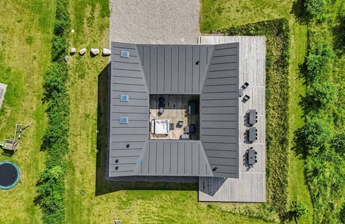 Casa unifamiliar del año 2022. A 700 m del mar. Privado: terreno en estado natural 2'018 m2, piscina cubierta (3 x 6 m, 18 m2, 160 - 160 cm de profundidad). Barbacoa. En el inmueble: sauna, trampolín, lavadora, secadora. Aparcamiento junto a la casa. Estación de carga eléctrica. Tienda de comestibles 1.8 km. Campo de golf 7.2 km. El propietario no acepta grupos de adolescentes/jóvenes.