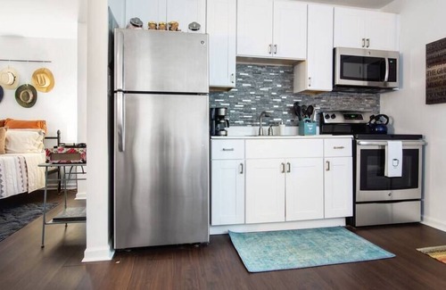 Este alojamiento de 1 dormitorio y 1 baño cuenta con una sala de estar, un sofá cama, aire acondicionado y escritorio. Disfruta del wifi, de la televisión por satélite o cable y del reproductor estéreo. El cuarto de baño incluye un secador de pelo, toallas y papel higiénico. La cocina está equipada con horno, placa de cocina y frigorífico, además de cafetera y tetera, microondas y utensilios de cocina. Y como hay una lavandería en los alrededores, no necesitarás llevarte mucho equipaje. Otras comodidades incluyen ropa de cama, una tabla de planchar, calefacción y una silla de oficina.
