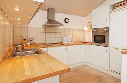 Layout: cocina abierta(fogón(eléctrico), campana extractora, cafetera, congelador(1-59L), nevera con congelador , lavadora), salón-dormitorio(TV(canales de televisión alemanes, canales de TV daneses), radio), dormitorio(cama doble), dormitorio(2x litera), cuarto de baño(bañera o ducha, lavabo, váter), lavavajillas, calefacción(radiador(es) eléctrico(s)), terraza, terraza(cubierta), barbacoa, bomba de calor aire-aire