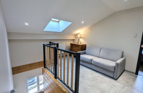-> 1st floor: Mezzanine with sofa / bathroom with walk-in shower / separate toilet / 2 bedrooms each with a 160x200cm bed / 2 bedrooms each with a 160x200cm bed and an 80x190cm bed.