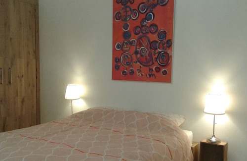 La casa rural, ubicada en el sótano, tiene su propia entrada y está completamente en la planta baja. Directamente en el albergue hay una terraza privada. El jardín trasero conectado con la casa del árbol, el columpio, el trampolín y la segunda terraza (ver foto) es de uso compartido. Hay un espacio de estacionamiento privado para nuestros huéspedes en nuestra propiedad.