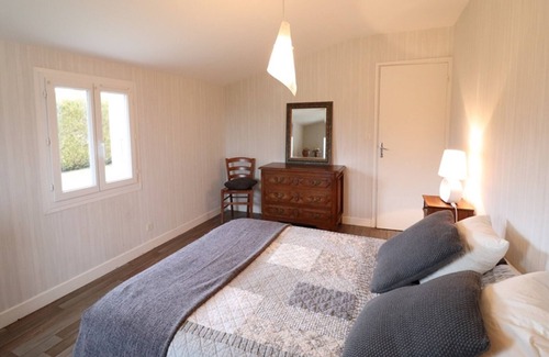 This house has enclosed wooded grounds with garden furniture, barbecue and deck chairs. On the ground floor, kitchen area, living room with fireplace (wood stove: 2 baskets provided then €15 per basket) and flat screen TV. Accessible by 3 steps, 1 bedroom with 1 double bed, bathroom and separate toilet. On the half floor, 1 bedroom with 1 double bed and 1 120 cm bed and relaxation area. On the 1st floor, 1 bedroom with 1 double bed and 1 extra single bed. Oil central heating extra (50€ per week).