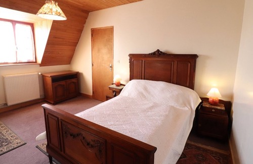 This cottage has an open plot of 1000 m² with portico and garden furniture. On the ground floor, living room with kitchen area, bathroom with toilet. On the 1st floor, 2 bedrooms with 1 double bed and 1 single bed. Baby equipment available. Oil central heating included. Prices all charges included.