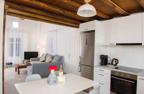 Esta casa de vacaciones tan agradable en Míkonos te permitirá disfrutar de todo tipo de actividades. Al disponer de un aparcamiento en las instalaciones, podrás olvidarte de tu vehículo e ir a pasear. Estarás a 3min a pie de Kórfos y a 8min a pie de Playa de Ornos.