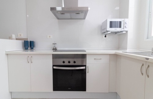 El interior ofrece todas las comodidades para una estancia placentera. La cocina americana está completamente equipada con electrodomésticos modernos como nevera, lavadora, horno, microondas, cafetera, tostadora, exprimidor y menaje completo. El salón cuenta con aire acondicionado y una práctica bomba de calor para mantener una temperatura ideal en cualquier época del año.