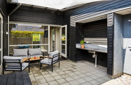 Casa unifamiliar del año 2010. A 500 m del mar. Privado: terreno en estado natural 1'171 m2. Barbacoa, parque infantil (tobogán, columpio). En el inmueble: sauna, futbolín, trampolín, lavadora, secadora. Aparcamiento junto a la casa. Tienda de comestibles 5 km. Campo de golf 12 km. El propietario no acepta grupos de adolescentes/jóvenes.