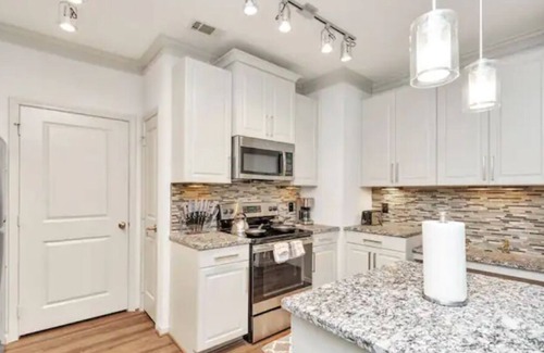 • Luxury 2 bd apt for up to 5 guests • Located in The Avery, a Harper’s Reserve gated community • Open plan living area & sophisticated kitchen with breakfast bar seating •resort-style swimming pool, plus courtyards, lounges, & fitness center • Ideal for vacations or remote workers • Close to The Woodlands and Conroe TX • Easy parking • clean and inviting• phenomenal location• The Woodlands restaurants are very near• major super grocery market within walking distance• Book your stay today