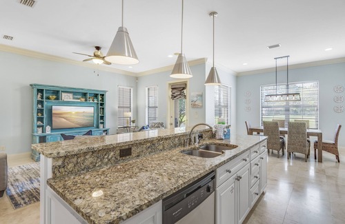 Este alojamiento de 3 dormitorios y 3.5 baños cuenta con una sala de estar, una zona para barbacoas, aire acondicionado y servicio local de entrega de comida. El cuarto de baño incluye un secador de pelo y toallas. La cocina está equipada con horno, placa de cocina y frigorífico, además de cafetera y tetera, máquina de hielo y microondas. Y no tendrás que llevarte ropa de más, porque podrás aprovechar la lavadora y la secadora.