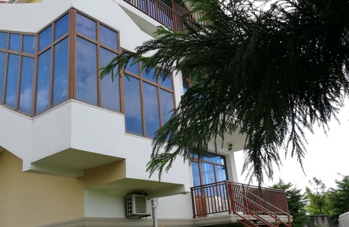 Villa se encuentra en la colina con vistas a la ciudad de Batumi, el Mar Negro y las montañas. Es perfecto para grandes familias y / o grupos de amigos. Villa se encuentra a 5 minutos en coche de la autopista central de Gonio y 8 minutos a la playa más cercana. Lo suficientemente grande como para acomodar grupos o familias numerosas. Los huéspedes tendrán 6 habitaciones separadas con baño privado, WiFi, TV, 2 salas de estar compartidas con cocinas. Hay una chimenea al aire libre para barbacoas y piscina en el jardín. Además de dos chimeneas interiores en las salas de estar.