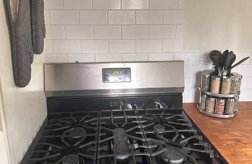 Prepara una comida casera en la cocina, equipada con horno, placa de cocina y frigorífico, además de cafetera y tetera, microondas y utensilios de cocina. El cuarto de baño incluye toallas, papel higiénico y jabón.