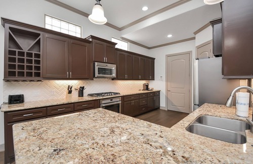 Este alojamiento de 3 dormitorios y 2.5 baños cuenta con una sala de estar, aire acondicionado y escritorio. Además, dispone de una bañera de hidromasaje, junto con toallas, champú y jabón. La cocina está equipada con horno, placa de cocina y frigorífico, además de cafetera y tetera, hervidor eléctrico y máquina de hielo. Y gracias a la lavadora y la secadora, podrás viajar con poco equipaje.