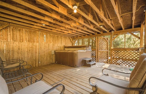 Experimente su hogar lejos del hogar en Mark's Retreat. Con cuatro habitaciones y tres baños, esta casa de campo estilo rancho es ideal para 11 huéspedes. La cocina cuenta con amplios techos abovedados, amplio espacio para comer, un gran televisor de pantalla plana, acceso directo al patio trasero o terraza envolvente, y una hermosa chimenea de gas para crear un ambiente acogedor en cualquier momento del día. Al abrirse a la sala de estar con hermosas puertas de madera y vidrio, encontrará muchos asientos cómodos y espacio para ver la pantalla plana de 40 "montada sobre la chimenea de piedra de gas. Justo al lado de la sala de estar hay dos encantadoras habitaciones con camas queen, unidas a través de un baño "jack and jill" con puertas que se abren a la sala de estar y a las dos habitaciones. Mientras continúa por el pasillo con su iluminación empotrada contemporánea y sus nuevos pisos de madera laminada, encontrará la suite principal con una cama king y dos ventanas para que el sol de la mañana o la tarde entre en la habitación. Relájese en su tiempo libre con el televisor de pantalla plana montado en la pared y tenga fácil acceso a un baño adjunto. Por último, pero no menos importante, hay un cuarto dormitorio con una cama litera y un hermoso armario de madera con TV. Te espera afuera una hermosa cubierta envolvente, con detalles de roca natural incorporados y mucho espacio para que todos se relajen. Ubicado en la parte trasera de un acogedor patio trasero, bellamente ajardinado con chimenea abierta, hay un porche cerrado adjunto a la cubierta que cuenta con muchos asientos y una chimenea de gas para mantener a todos calientes en una noche fresca. Toda la propiedad tiene un patio cercado perfecto para sus amigos de cuatro patas o miembros más jóvenes de su grupo que quieran explorar pero que necesiten un espacio seguro para hacerlo. ¡Ven y relájate en Mark's Retreat hoy!