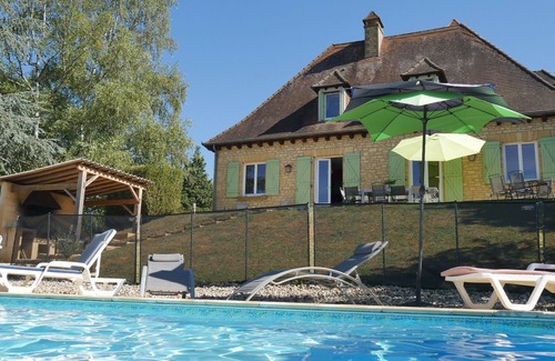 Hermosa y típica casa (6 a 12 personas) en el corazón del Périgord que incluye 6 dormitorios, una piscina y un jardín de 1000 metros cuadrados.