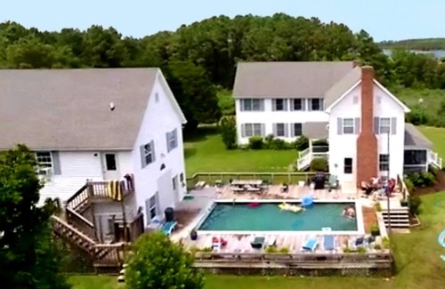 La pintoresca propiedad de 7,4 acres puede ser toda suya durante la semana e incluye un deslizamiento de aguas profundas, una playa de arena y un muelle flotante a lo largo de los 1,200 pies de costa. El águila, el águila pescadora, la garza, los halcones y las aves acuáticas son tan comunes como los amaneceres. Los terrenos en Cherry Point incluyen una cancha de tenis: perfecta para tenis, baloncesto, hockey, patinaje sobre ruedas y más; una piscina de 32'x16 '(rodeada de terrazas, mesas, sillas y juguetes para la piscina); y un montón de espacio abierto en la propiedad con un gran campo para softbol, fútbol, bádminton, herraduras y más, incluidas algunas zonas boscosas y pequeñas playas privadas de arena para explorar y relajarse.