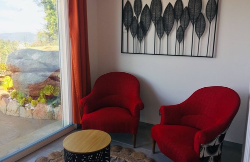 En el sur de Córcega, hermosa villa independiente con vistas panorámicas al mar y a las montañas sobre el Golfo de Valinco, a 15 minutos de las playas y calas de Propriano y Olmeto, situada en una ladera entre el mar y las montañas que pueden acomodar hasta 8 adultos y un niño y un bebé.