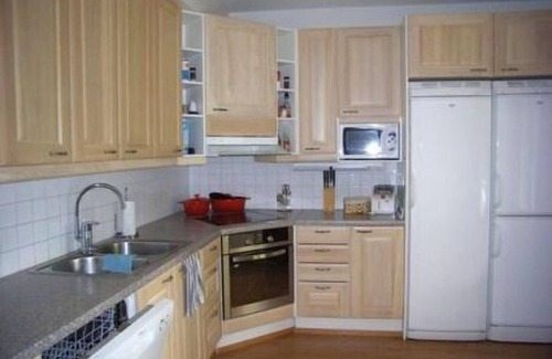 65 km al noreste de Kuopio, el lago Syväri a 50 m, ubicado en la orilla de la bahía Petäjälahti, orilla de fondo somero y duro arenoso, bote propio. Casa de troncos de tres plantas, construida en 2007, con 7 habitaciones separadas y una zona común. Planta superior: 2 apartamentos, cada uno con un dormitorio 2+1 camas (uno con cama doble), salón con mini-cocina, baño, WC, microondas, TV, reproductor CD. Entre los 2 apartamentos hay un salón/biblioteca con un sofá y sillones para 10 personas, así como 2 camas extra. Planta media: tres apartamentos, 2 tienen un dormitorio con 2 camas, mini-cocina en el salón, baño, WC, microondas, TV, reproductor CD. El tercer apartamento es piso de una habitación con una litera (1+1 camas) y un WC para los discapacitados. La planta media incluye el salón del chalé, que funciona como sala de conferencias o comedor. Una buena cocina está conectada con el salón. Planta baja: 2 apartamentos, cada uno con 2 camas (uno tiene una cama doble), mini-cocina, baño, WC, microondas, TV, reproductor CD. En la planta baja hay una habitación con chimenea, mesa de billar, reproductores de DVD y CD. Sauna con estufa eléctrica, baño (5 duchas). En el lado del chalé que da al lago hay una terraza de tamaño completo. La sauna a orillas de lago (50 m²) con un cuarto con chimenea/cocina, sauna (estufa a leña), baño, vestidor y una terraza grande. En el edificio hay un hornillo eléctrico, frigorífico eléctrico, chimenea termoacumuladora, agua caliente y fría y 2 duchas. Ubicado en el área Nipanen de Tahkovuori, este chalé es ideal para las conferencias o como un lugar para fiestas/celebraciones para varias familias juntas. El chalé tiene todo el equipamiento AV necesario para las conferencias. El edificio está ubicado al final de la carretera en su propia orilla del lago y su parcela tranquila está en estado natural. Sin tráfico. Nota: mascotas están permitidas en la planta baja, PERO NO en la sala de chimenea y el departamento de sauna. Reservas son válidas de 16.00 el día de llegada al mediodía (12.00) del día de salida. (Esto se aplica también a las reservas de fines de semana). La casa no se alquila a los jóvenes.