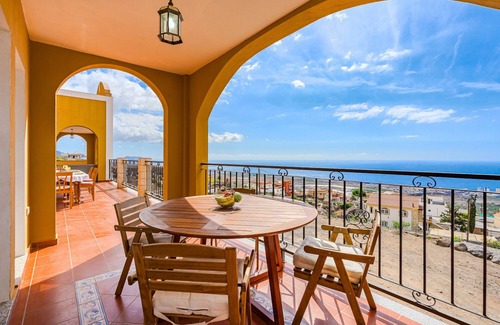 Precioso apartamento con impresionantes vistas al mar en Adeje, Tenerife Sur!Bienvenido a sus vacaciones de ensueño en Tenerife! Este precioso apartamento se encuentra en una encantadora casa a unos 350 metros de altura en Adeje y ofrece una vista panorámica incomparable del mar y de la costa sur de Tenerife con sus tres islas hermanas.El apartamento dispone de tres cómodos dormitorios y un moderno cuarto de baño con ducha y aseo. La amplia zona de estar está equipada con aire acondicionado y se comunica directamente con la cocina abierta y totalmente equipada, ideal para disfrutar de cenas en compañía. Lo más destacado es la enorme terraza con sus vistas únicas al mar. Posibilidades de dormir: el dormitorio principal cuenta con una cama king size, mientras que los otros dos dormitorios están equipados con camas queen size; uno de ellos dispone además de una cama individual. En el salón hay un sofá cama para dos huéspedes más.Un gran cuarto de baño con ducha y WC.Comodidades modernas: manténgase conectado en todo momento con la conexión wifi de alta velocidad gratuita en todo el apartamento.Terraza privada: disfrute del día en la amplia terraza con impresionantes vistas al mar. Zona exterior: perfecta para tomar el sol y relajarse o para organizar una agradable barbacoa. Tenga en cuenta que la zona exterior también puede ser utilizada por los huéspedes del segundo apartamento; sin embargo, cada apartamento tiene su propia terraza privada con vistas al mar.Alrededores y lugares de interés:Gracias a su céntrica ubicación en Adeje, estará a poca distancia en coche de algunas de las mejores atracciones de Tenerife:Siam Park: disfrute de un día lleno de diversión en el mundialmente famoso parque acuático.Puerto Colón: visite el encantador puerto y disfrute del ambiente marítimo.Playas de Costa Adeje: relájese en las impresionantes playas y disfrute de las aguas cristalinas.Este apartamento es el punto de partida perfecto para descubrir la belleza y la diversidad de Tenerife. Tanto si desea relajarse como si prefiere vivir una aventura, aquí encontrará el lugar ideal para su estancia.¡Reserve hoy mismo y asegúrese unas vacaciones inolvidables en Adeje!