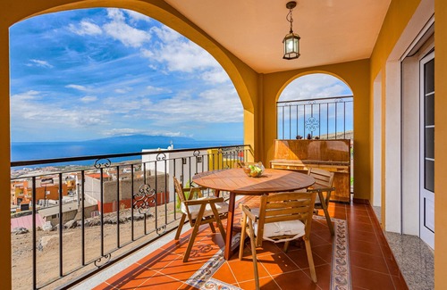 ¡Fantástico alojamiento para hasta 12 personas con impresionantes vistas al mar en Adeje, Tenerife Sur!¡Bienvenido a sus vacaciones de ensueño en Tenerife! Este maravilloso alojamiento, que consta de 2 apartamentos independientes, se encuentra en una encantadora casa a unos 350 metros de altura en Adeje y ofrece una vista panorámica incomparable del mar y de la costa sur de Tenerife con sus 3 islas hermanas.El alojamiento está dividido en dos apartamentos independientes y cuenta con cinco cómodas habitaciones y dos cuartos de baño, una amplia zona de estar (con aire acondicionado) y dos cocinas abiertas. Hay conexión Wi-Fi de alta velocidad gratuita en todo el alojamiento. Lo más destacado es la enorme terraza con sus vistas únicas al mar y la gran zona exterior, que invita a tomar el sol y relajarse o a disfrutar de una agradable barbacoa.Apartamento 1:Capacidad: el dormitorio principal cuenta con una cama king size, mientras que los otros dos dormitorios están equipados con camas queen size; uno de ellos tiene además una cama individual. En el salón hay un sofá cama para dos huéspedes más.Un gran cuarto de baño con ducha y WC.Apartamento 2:Capacidad: El dormitorio principal tiene una cama king size y un sofá cama adicional, mientras que el otro dormitorio tiene 3 camas individuales.Un gran cuarto de baño con ducha y bañera de hidromasaje y WC separado.Entorno y lugares de interés:Gracias a su céntrica ubicación en Adeje, se encuentra a poca distancia en coche de algunas de las mejores atracciones de Tenerife:• Siam Park: disfrute de un día lleno de diversión en el mundialmente famoso parque acuático.• Puerto Colón: visite el encantador puerto y disfrute del ambiente marítimo.• Playas de Costa Adeje: relájese en las impresionantes playas y disfrute de las aguas cristalinas.Este alojamiento vacacional es el punto de partida perfecto para descubrir la belleza y diversidad de Tenerife. Tanto si desea relajarse como si prefiere vivir aventuras, aquí encontrará el lugar ideal para su estancia.¡Reserve hoy mismo y asegúrese unas vacaciones inolvidables en Adeje!