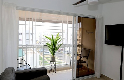 El acogedor apartamento está a 5 minutos del aeropuerto (AILA) y a 10 minutos de la playa (Boca Chica). Tiene dos dormitorios y el apartamento está completamente amueblado con todas las comodidades para que su estancia sea cómoda. Paradas de autobús, supermercados y centro comercial se encuentran a sólo 2 minutos. ¡Todo lo que necesitas está cerca de ti!
