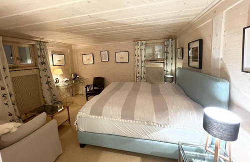Enjoy the perfect winter ski holiday in a luxury three-bedroom, three bathroom apartment in charming and exclusive Rougement and Gstaad. Recently restored and decorated, and facing south-west for plenty of sunshine, this chalet apartment with garden extends over two floors. with two bedrooms, two bathrooms upstairs and one bedroom , with it's own separate entrance, and with a king size bed and a pull-out sofa bed downstairs. It's perfect for extra privacy.