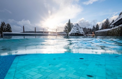 En medio de la única sur del Bosque Negro, el hotel está Vier Jahreszeiten am Schluchsee a una altitud de 1000 m. Aquí encontrará todo lo necesario para relajarse y disfrutar de descanso y relajación. Sólo el lugar perfecto para el bienestar y la salud en el Bosque Negro, puede experimentar horas inolvidables en los huéspedes. Un refugio entre los deportes y juegos, belleza y bienestar son las habitaciones, suites y apartamentos, que ofrecen una magnífica vista de la exuberante verde de los bosques de los alrededores y prados. En Vier Jahreszeiten am Schluchsee, los huéspedes pueden disfrutar de la diversidad culinaria. La alta cocina se sirve en el restaurante Panorama. El ambiente rústico de la Selva Negra en el restaurante Am Kachelofen forma el marco de las delicias predominantemente regionales del Dreiländer-Eck y del Bella Vista. Las delicias mediterráneas y las especialidades italianas son decisivas.