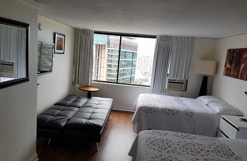 Habitaciones de estudio contiguas recientemente renovadas para hasta siete personas en Waikiki | Hotel en Honolulu