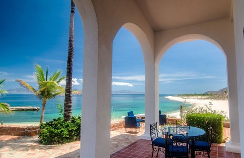 This enchanting, luxurious hacienda has 4 ocean view master bedrooms plus an office/bedroom looking towards the mountains. The hacienda is just steps to the beach and marina of Las Cruces .