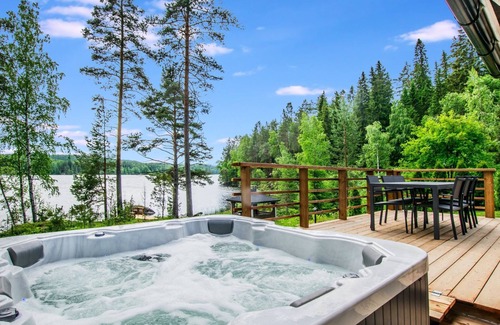 Permitido máximo 1 mascota / perro. Acogedora casa de campo decorada y bien equipada a orillas del lago Hankavesi. La casa cuenta con camas para siete personas y se admiten mascotas en Hanhenpesä. Amplio salón y cocina con hermosas vistas al lago desde las ventanas. La terraza cuenta con un baño calinete, muebles de jardín y parrilla de gas. Hay una zona de barbacoa independiente en la orilla. El Parque Nacional Konnevesi Sur está a solo 9 km. A 84 km al suroeste de Kuopio, Hankavesi a 25 m, muelle propio, bote de remos y dos tablas de paddle surf. La orilla es de arena durante algunos metros y se profundiza rápidamente. Casa de madera de dos plantas (1999), con salón y cocina integrados. La cocina está bien equipada y cuenta con placa de inducción, horno de convección, lavavajillas y un amplio frigorífico con congelador. El comedor tiene espacio para ocho comensales. El salón cuenta con chimenea, sofá-TV y un potente altavoz Bluetooth. En la planta baja hay dos dormitorios: uno con cama doble y el otro con dos individuales. En la planta baja también hay una sauna (estufa de leña), un baño con ducha y WC, un vestidor con acceso a la terraza y un aseo independiente. En la planta superior se encuentra el loft con zona de dormir para tres personas. Una amplia terraza con una pequeña zona cubierta y un espacio abierto con muebles de jardín de alta calidad, el baño calinete y barbacoa de gas. Hay una caseta de barbacoa independiente con chimenea en la orilla. Hay un garaje y una toma de corriente en la pared de la casa donde puede cargar su coche eléctrico con su propio cargador por un suplemento. El pago se realiza directamente al propietario. Parcela abierta con sol casi todo el día. Un patio con césped y pendiente desciende desde el patio delantero hasta la playa. Parque Nacional Konnevesi del Sur a 9 km, Kuopio a 84 km, Suonenjoki a 38 km. Ropa de cama y limpieza final disponibles por un suplemento. Se admiten mascotas. Si se aloja con una mascota, por favor, añada la información a su reserva. Gracias.