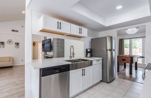 Al instalarte en este alojamiento de 5 dormitorios y 2 baños, encontrarás una sala de estar, una zona para barbacoas y aire acondicionado. El cuarto de baño incluye un secador de pelo, toallas y papel higiénico. La cocina está equipada con horno, placa de cocina y frigorífico, además de cafetera y tetera, microondas y utensilios de cocina. Y como podrás aprovechar la lavadora y la secadora, no te hará falta llevar mucho equipaje.