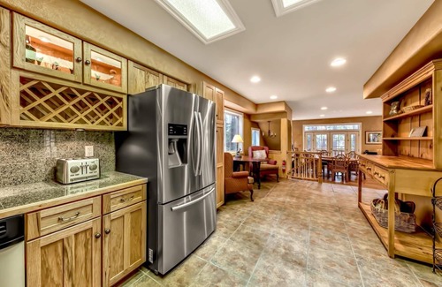 Al chef del grupo le encantará esta cocina completamente equipada con encimeras de granito, electrodomésticos de acero inoxidable, una gran nevera / congelador con puerta francesa y lavavajillas. Las vistas al bosque y los tragaluces en esta cocina lo convierten en un espacio de trabajo tan agradable.