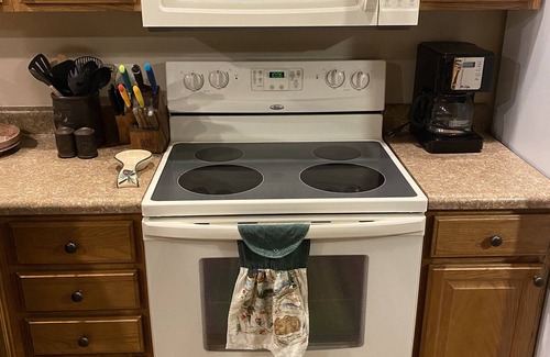 En suelo radiante y AC. Porche cubierto, lavadora y secadora junto con todo lo que necesitará en la cocina para preparar una comida grande o la merienda más pequeña. Tenemos cable completo junto con wifi, sin embargo, no proporcionamos una computadora, por lo que deberá traer su propio dispositivo para trabajar.