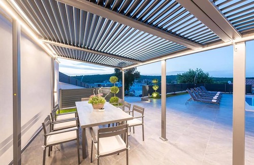 Esta impresionante casa de vacaciones en Sorici, idílicamente situada en la pintoresca campiña de Istria, le ofrece el refugio ideal para la paz, la comodidad y la relajación. Comience el día con un refrescante chapuzón en la piscina y deje atrás la vida cotidiana mientras se relaja en las cómodas tumbonas. Disfrute de vez en cuando de un rebote en la cama elástica o de una partida de ping-pong. El balcón de la planta superior le ofrece unas fantásticas vistas de la campiña circundante, mientras que la terraza cubierta es el lugar ideal para disfrutar de acogedoras comidas familiares.
