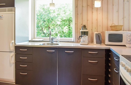 A poca distancia del fiordo, se alojará aquí en una hermosa casa de vacaciones en un popular asentamiento de casas de vacaciones. La arquitectura y el mobiliario son preciosos y todos los muebles están en consonancia con el estilo de la casa. Delante del salón está la terraza. Los 4 dormitorios son 2 y 2 en alas. Un cuarto de baño está equipado con bañera de hidromasaje y sauna. En el terreno natural hay mucho espacio para juegos.