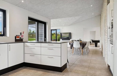 Entrarás en una casa de vacaciones moderna y refinada, amueblada con estilo. Aquí podrá ponerse cómodo con una copa de vino en el salón en los días más frescos. El techo alto y la emocionante construcción de este alojamiento le dan suficiente espacio para respirar e igualmente una sensación de amplitud. Esta casa también le ofrece una sala de actividades donde podrá jugar al ping-pong y al billar.