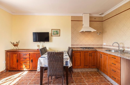 Disfrute de unas vacaciones relajantes a pocos minutos de la hermosa playa de arena. Su encantadora casa de vacaciones le ofrece el refugio ideal para disfrutar del sol, la naturaleza y el ambiente andaluz. Póngase cómodo en el acogedor salón. La chimenea abierta confiere a la estancia un ambiente cálido, mientras que los cómodos sofás invitan a relajarse. En la cocina, de diseño tradicional, podrá preparar deliciosas comidas juntos y disfrutarlas en la gran mesa de comedor.