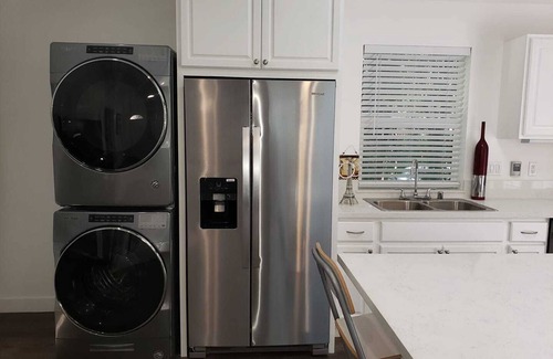 Hay todos los electrodomésticos nuevos, incluyendo lavadora / secadora nueva, refrigerador, estufa, horno, microondas, TV de pantalla plana de 60 ', cafetera, licuadora y tostadora.