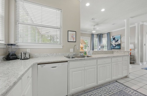 Esta hermosa casa de Seagrove es el lugar perfecto para unas excelentes vacaciones. En su interior encontrará un amplio plan de piso abierto. En la sala de estar hay muchos asientos cómodos para disfrutar mientras se relaja y mira la pantalla plana. La cocina está completamente equipada con electrodomésticos y cuenta con mucho espacio, incluso para un grupo más grande. También hay asientos adicionales en el mostrador de la mesa de la cocina para cenas familiares.