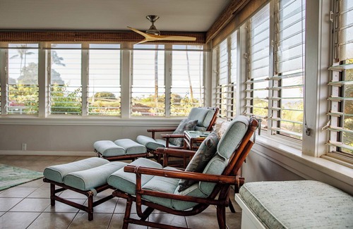 Nuestra cabaña completamente remodelada, única en su tipo, ofrece las vistas más espectaculares de toda la propiedad. Se pueden ver vistas de Molokai y Lanai desde esta espaciosa cabaña de 2 dormitorios y 2 baños diseñada a medida. Techos abovedados, gran cocina moderna, hermosa terraza con ventanas envolventes "huracán" y "gran sala" abierta completan este tesoro en el paraíso. Sistema de sonido de última generación, TV y cobertura Wi-Fi superior solo se suman a la experiencia Aloha.