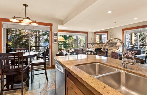 ¡Espectacular casa adosada de 2 dormitorios ubicada en el centro para disfrutar de todo lo que Whistler tiene para ofrecer! Calidad de acabado en todo. Vestíbulo privado de buen tamaño ideal para guardar esquís, suba a la sala de estar para encontrar una sala de estar moderna, luminosa y espaciosa, techos altos abovedados, chimenea de gas y muchos muebles cómodos. Cocina de alta gama con electrodomésticos de acero inoxidable de tamaño completo, barra de desayuno y comedor separado para 6.