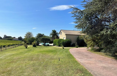 Hermosa y amplia villa en el corazón de la campiña de Ardèche, en un entorno agradable rodeado de viñedos, tranquila y pacífica, en 3000 m² de un hermoso jardín cerrado, con una gran terraza y una gran piscina privada segura con tobogán. Interior muy espacioso y confortable, con verenda salón climatizado. Increíble vista de los viñedos. Terreno de petanca a la sombra.