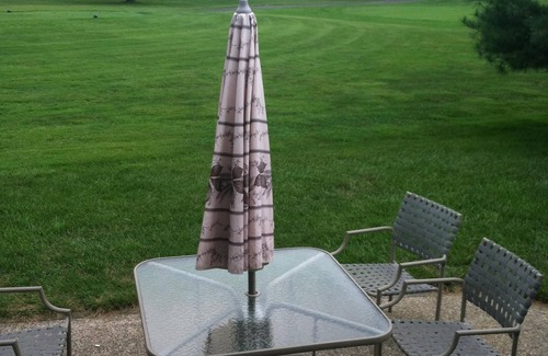 Puertas francesas a patio de comer al aire libre con vistas a primer tee del campo de golf y club de campo - Hermosa vista!