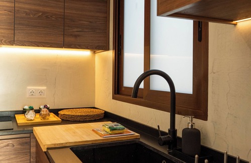 El alojamiento cuenta con dos habitaciones, un baño y una cocina abierta que conecta con el salón y una amplia terraza. Cuenta con climatización, ventiladores, TV, cocina equipada y mucho más.