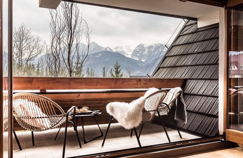 Una terraza se coloca desde el lado del dormitorio y el segundo desde la sala de estar con una hermosa vista de las montañas Tatry.