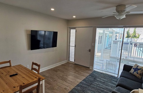 Hermoso condominio de 1 dormitorio con capacidad para 6. 2 camas matrimoniales y 1 sofá cama. Condo se encuentra en el 1er piso. Así que no tienes que luchar con tu equipaje por las escaleras. Solo estacione y camine directo a la puerta. Excelente ubicación para personas mayores o discapacitadas que tienen problemas con las escaleras. Perfecto para la familia con la entrada de la piscina justo fuera de la puerta del condominio. Estacionamiento fuera de la calle, terraza, y pasos de la playa y el paseo marítimo. ¿Qué más podrías pedir? ¡También está cerca del muelle Seaport Pier recién construido! También hay una sala de lavandería recientemente renovada para su uso. Este condominio tiene todo lo que necesita para unas excelentes vacaciones.
