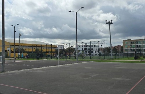 encontraras un parque con columpios para niños, cancha de basketball, futbol y maquinas para hacer ejercicio.